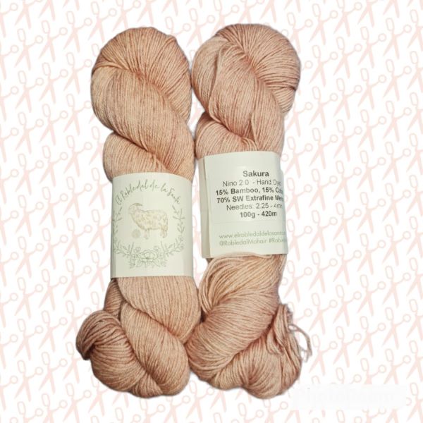 15% Bambú, 15% algodón y 70% Merino Extrefino Superwash (19micras)